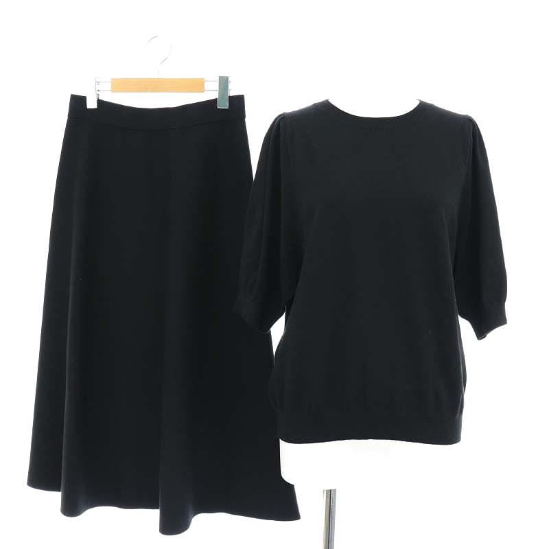 22AW ヴィスコースストレッチ パフスリーブ 半袖 ニット スカート セットアップ