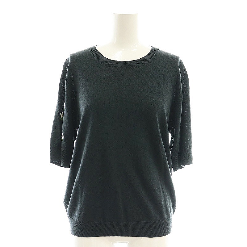 フラワー刺繍シルクリネンニット