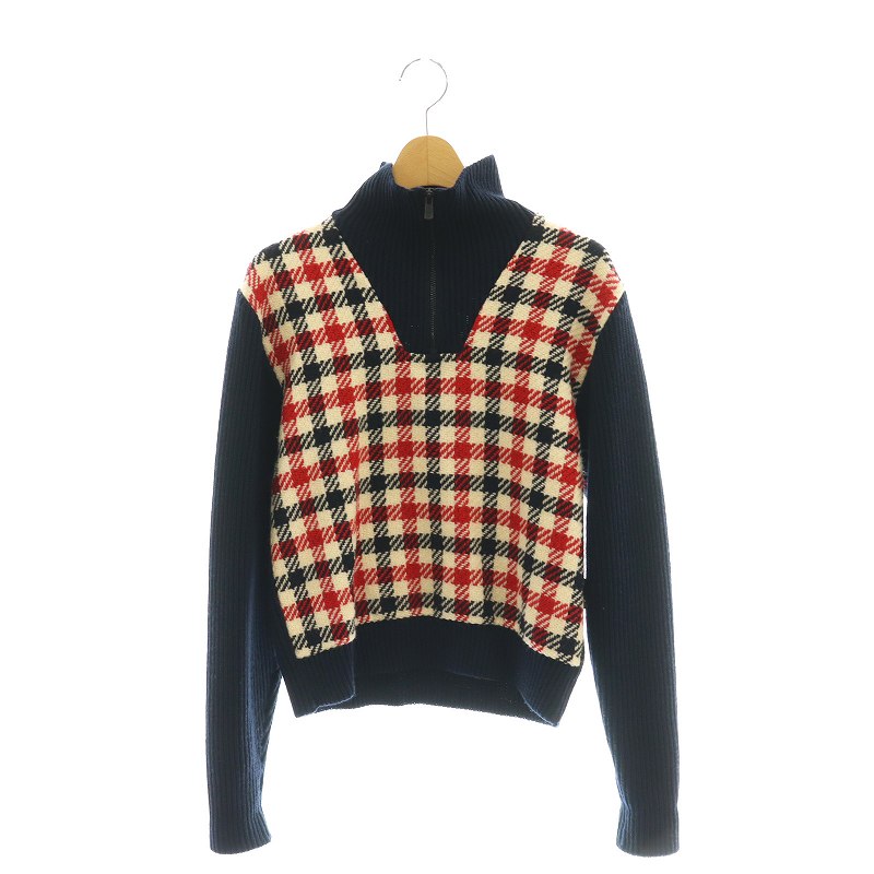 格子柄ハーフジップ プルオーバーニット