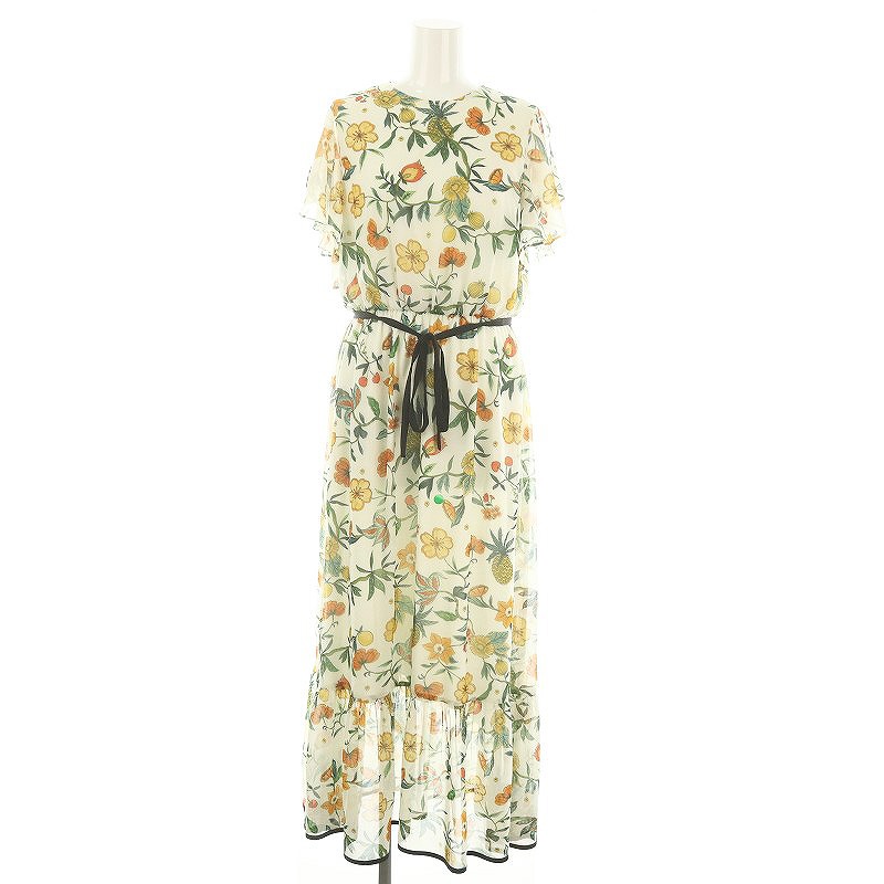 ボタニカルフルーツプリントラッフルスリーブワンピース