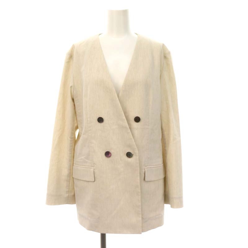22SS リネンストレッチノーカラーダブルジャケット