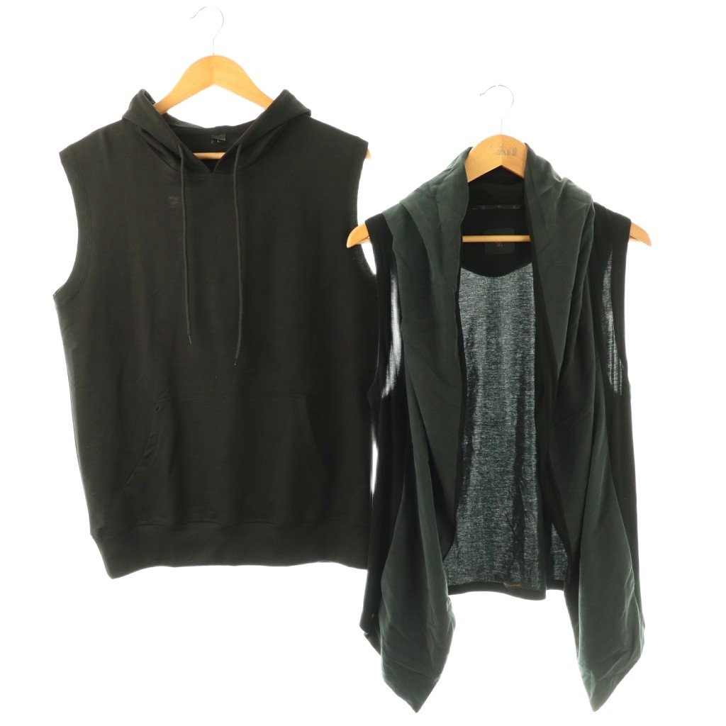 素材切り替えフーデットベスト 2枚セット