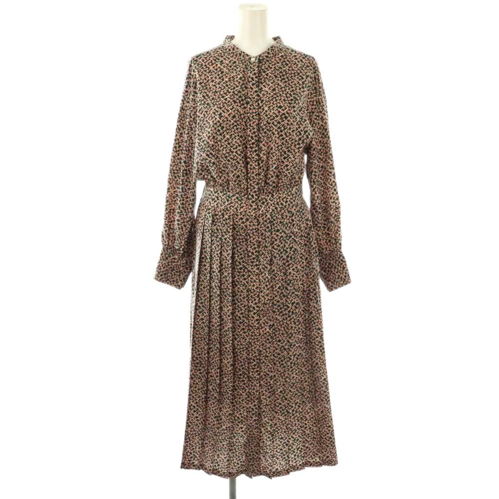 スクエアメッシュプリント プリーツシャツワンピース
