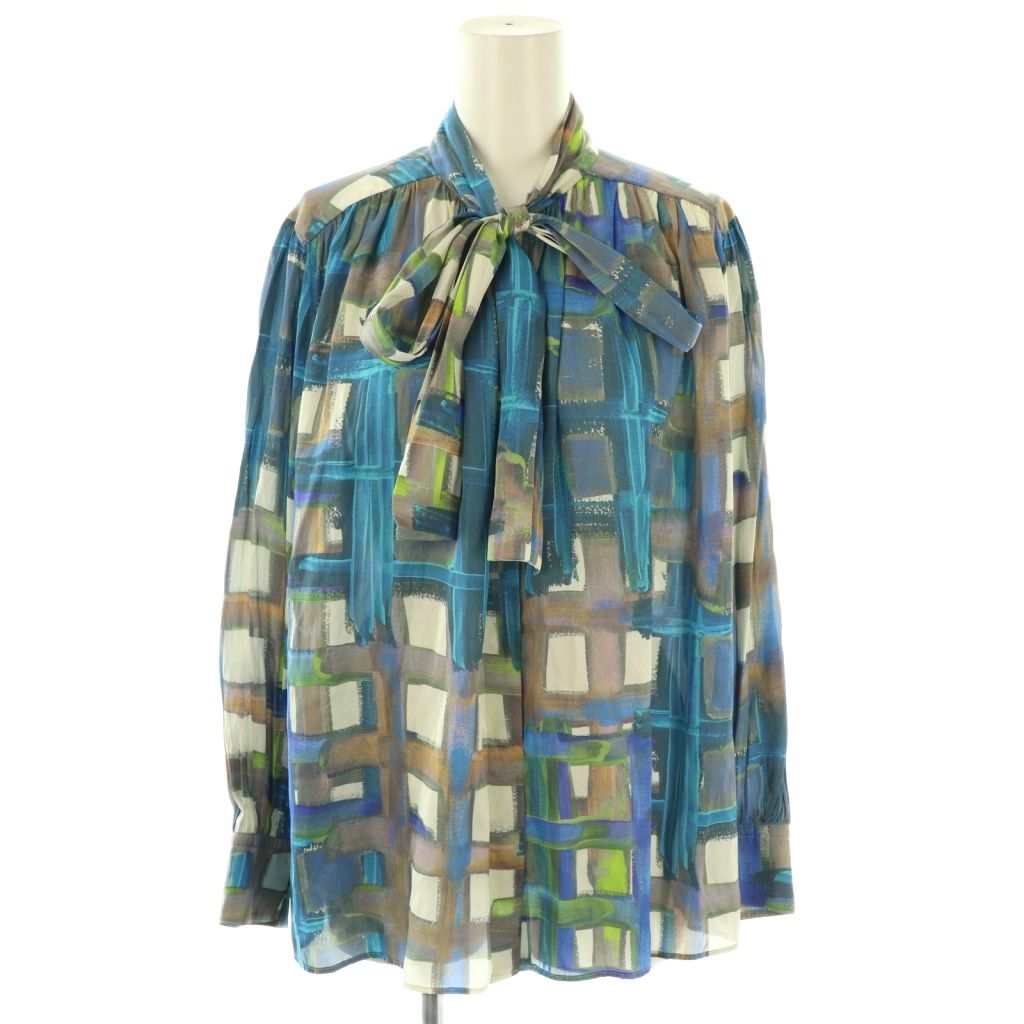 24SS Ballsey スタックチェックプリント ワイドボウタイブラウス