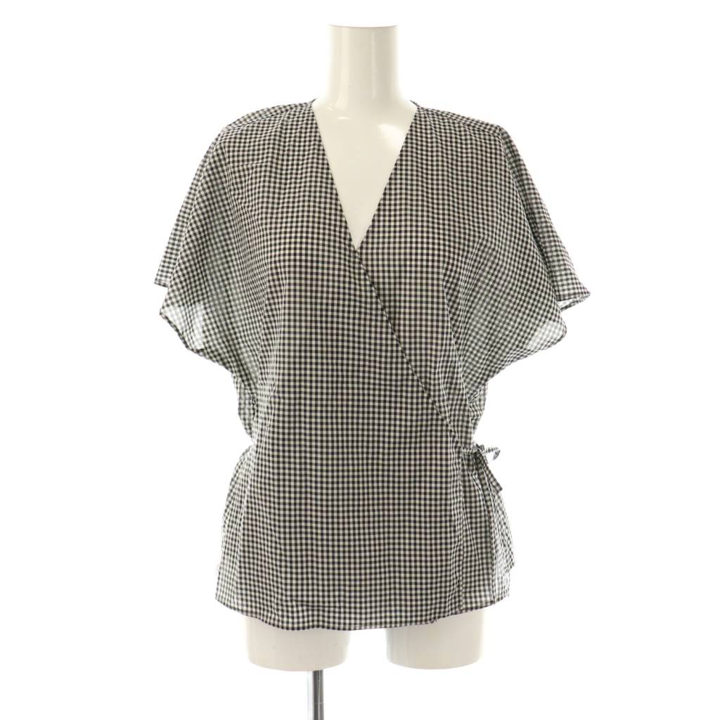 24SS ローンギンガムチェック カシュクールライクブラウス