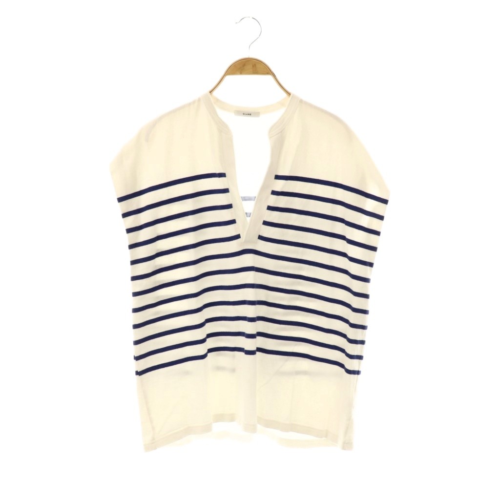 WIDE HENLEY NECK N/S BORDER TOPSボーダーノースリーブカットソー