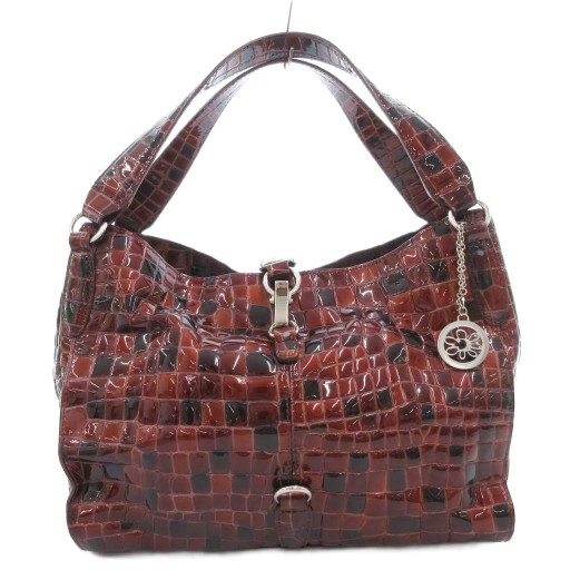 クロコ型押し エナメル ショルダーバッグ