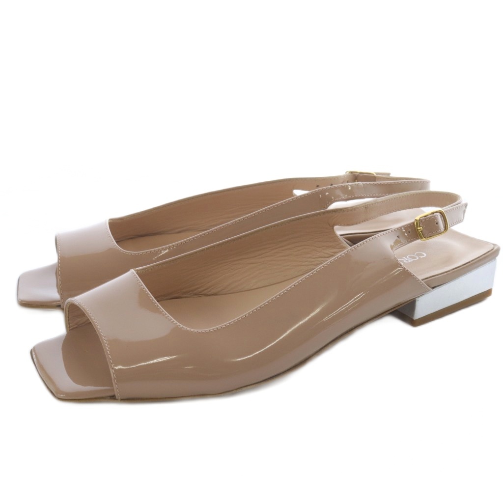 ×自由区 エナメルスクエアトゥサンダル ミュール