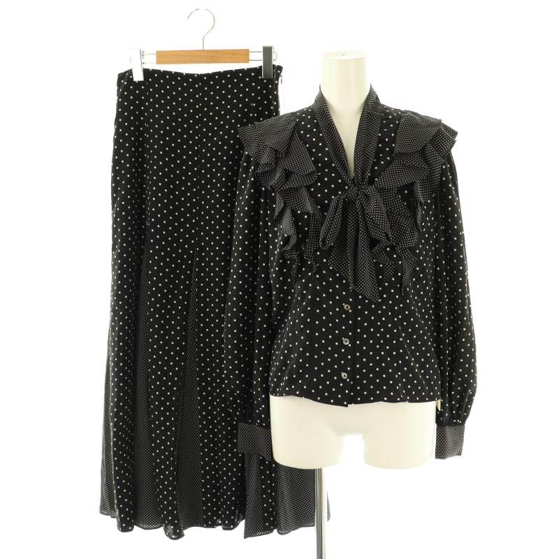 ミックスドットフリルブラウス フレアスカート セット