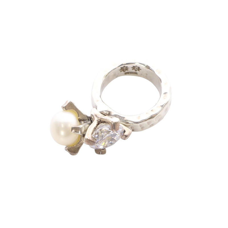 SILVER925 ジルコニア 大粒 パール リング