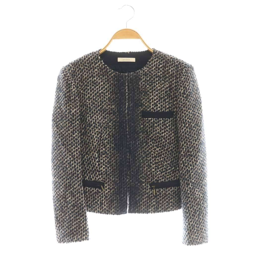 モヘヤ混 ノーカラーツイードジャケット