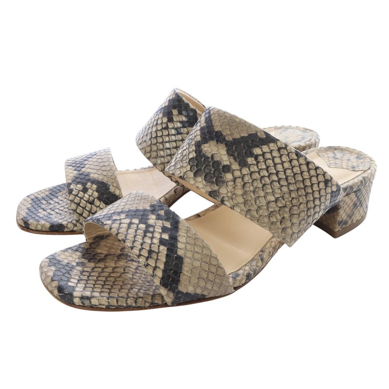 パイソンレザーローヒールサンダル