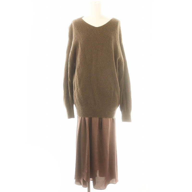 シャギーニットサテンキャミワンピースセット