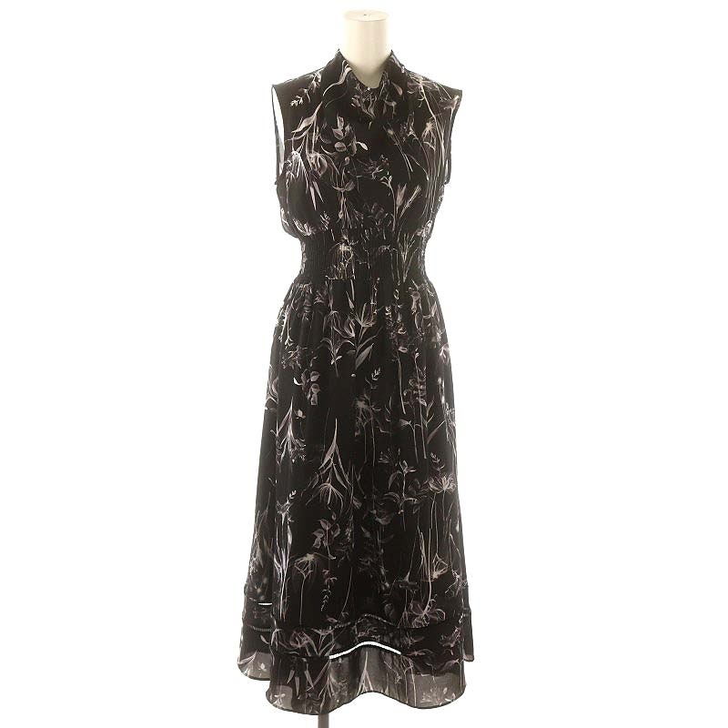 22SS ドレープネックシャーリングプリントワンピース