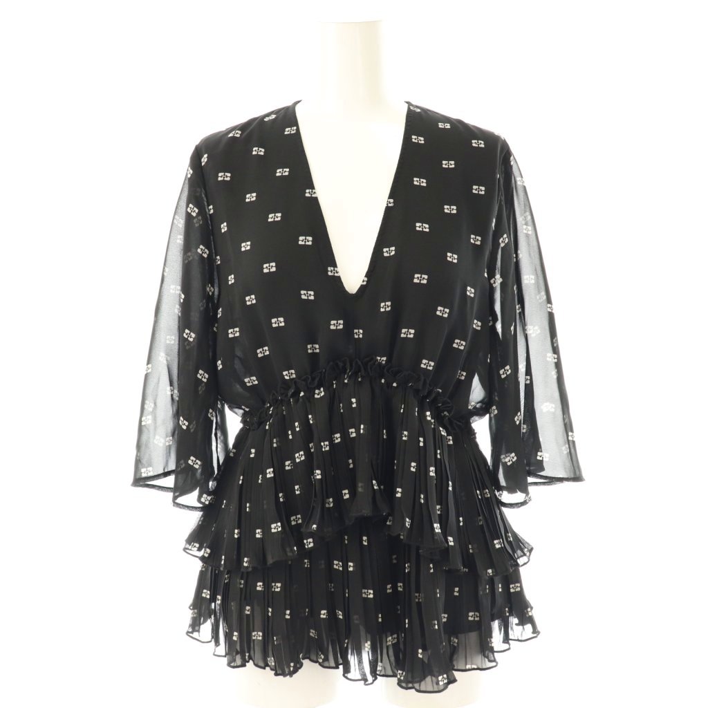 Pleated Georgette V-neck ロゴブラウス