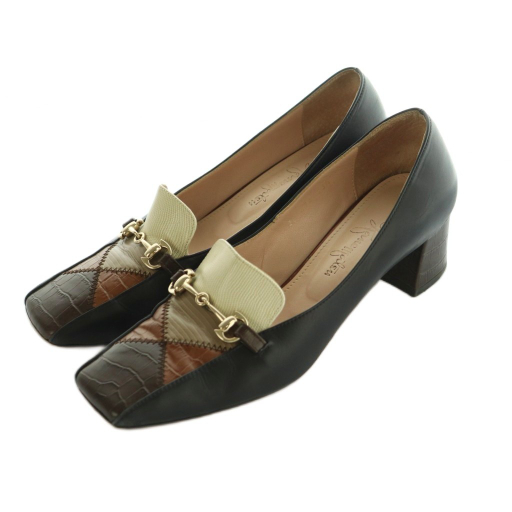 スクエアトゥビットヒールローファー