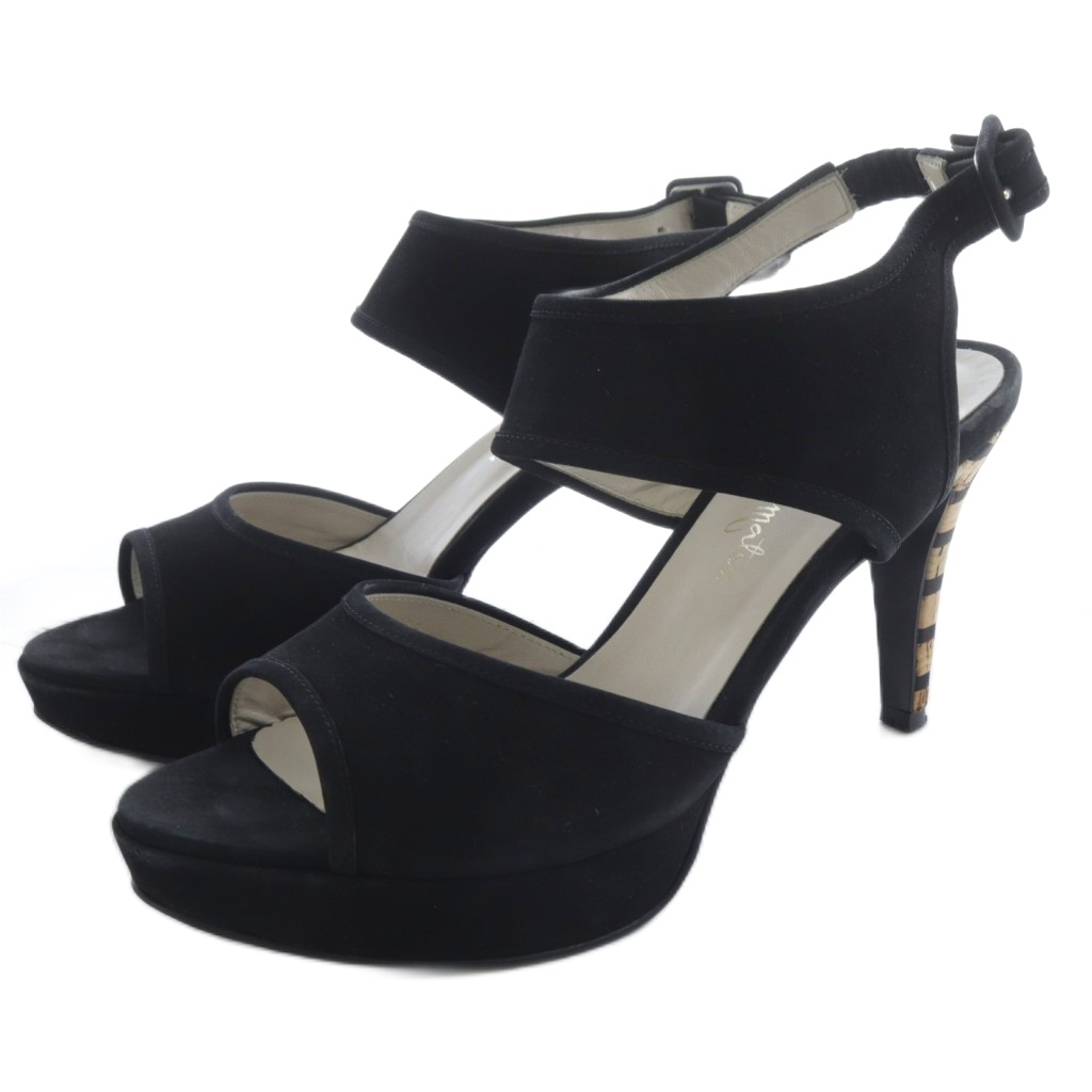 ウッドハイヒールスエードサンダル