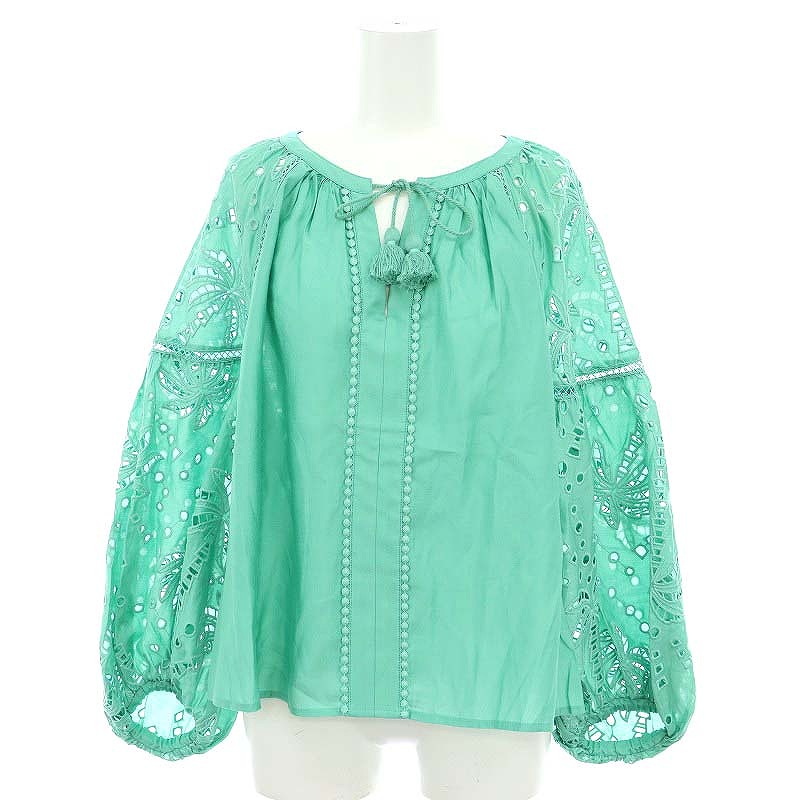 24SS ヤシ柄カットワークトップ トップス