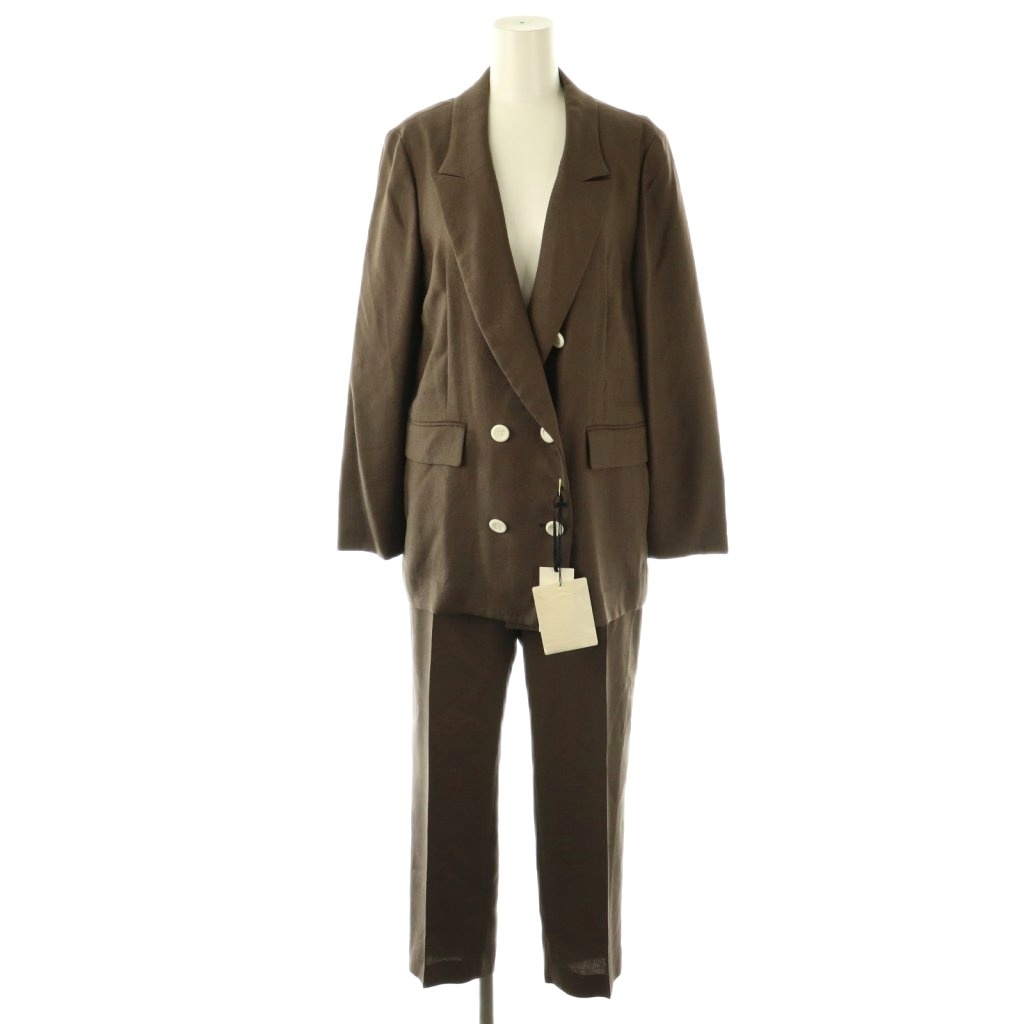 リネンタッチダブルジャケット×リネンタッチテーパードパンツ セットアップ