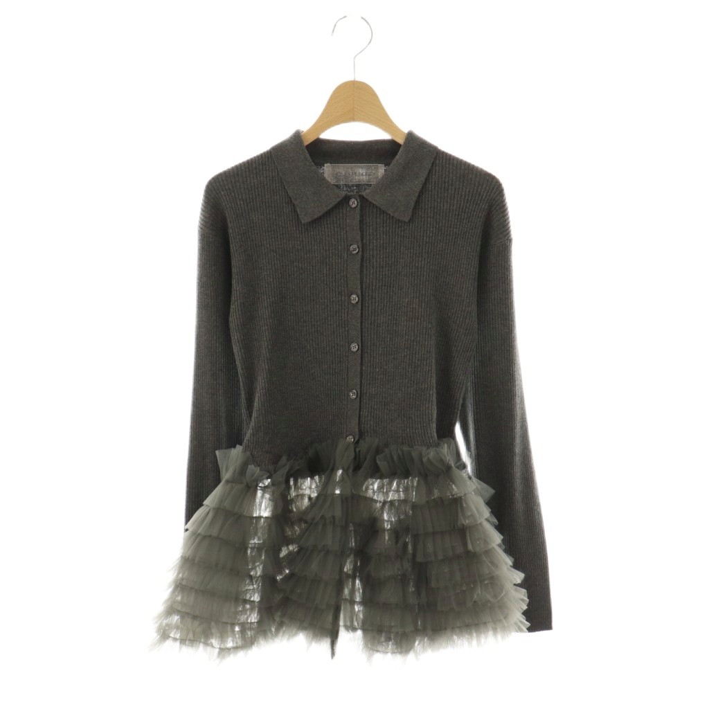 tulle peplum polo knit cardiganニットカーディガン