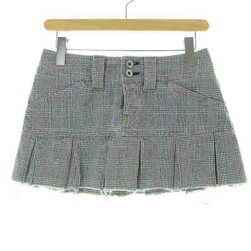 チェック デニムスカート プリーツ切替
