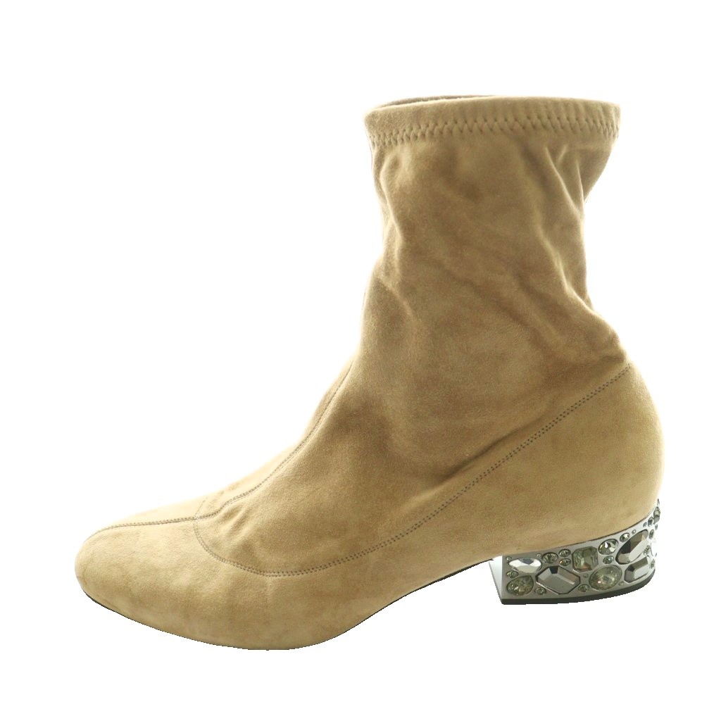ビジューヒールスウェードソックスブーツ