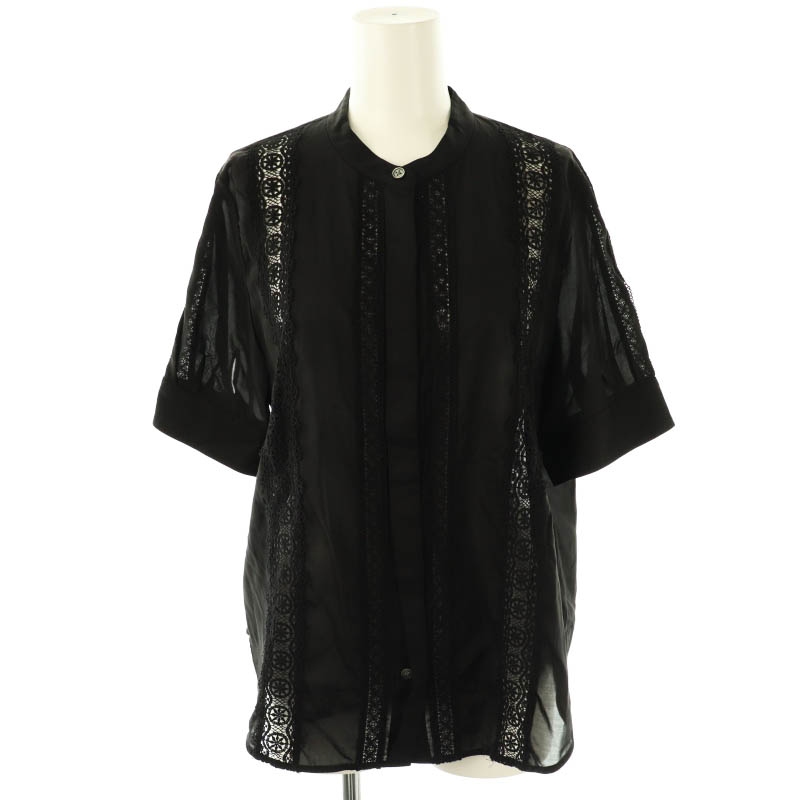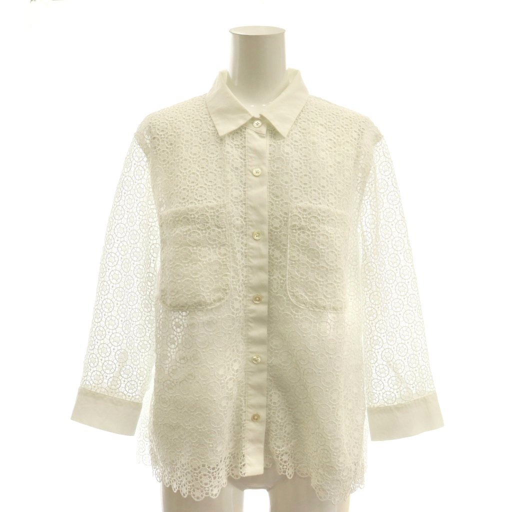 25SS ジオメトリックフラワーレースクロップド丈シャツ ブラウス