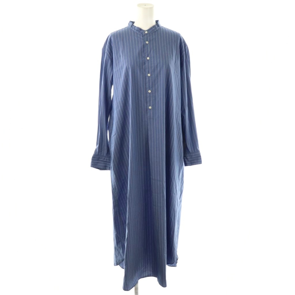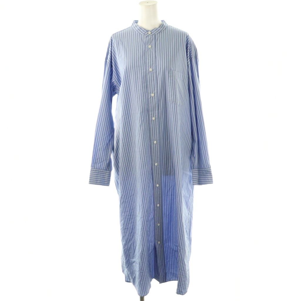 ストライプ バンドカラーシャツワンピース
