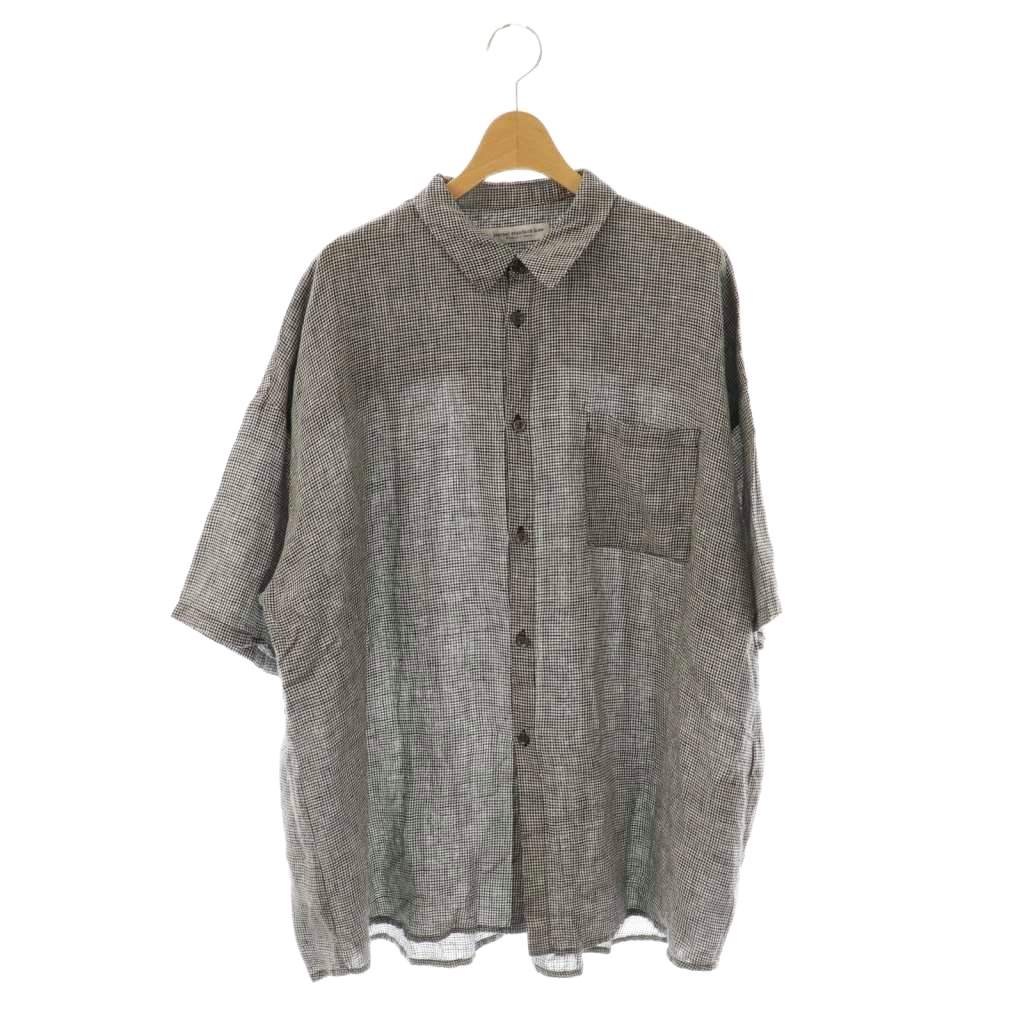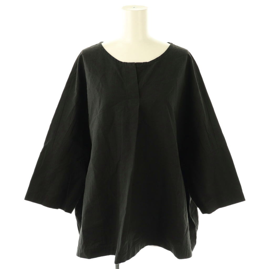 24SSリネン混ノーカラーブラウス