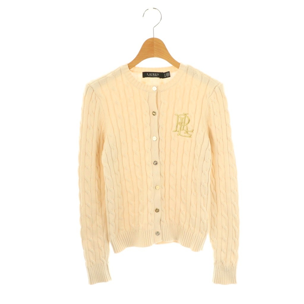 ロゴ刺繍ケーブルニットカーディガン
