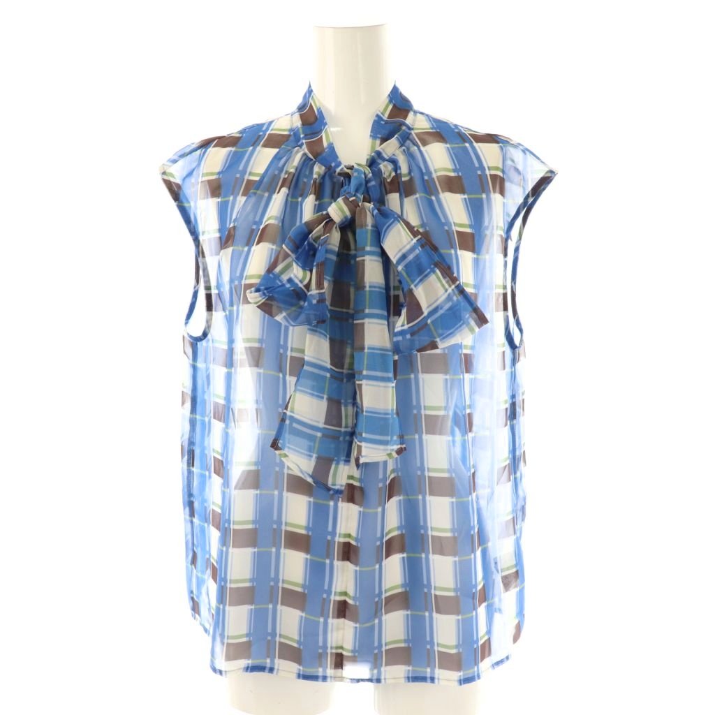 グラフィカルチェック柄プリントブラウス