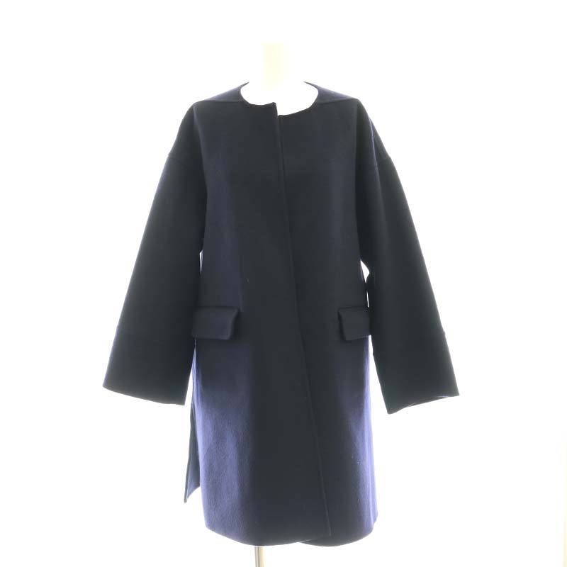 ウールリバーポケットノーカラーロングコート