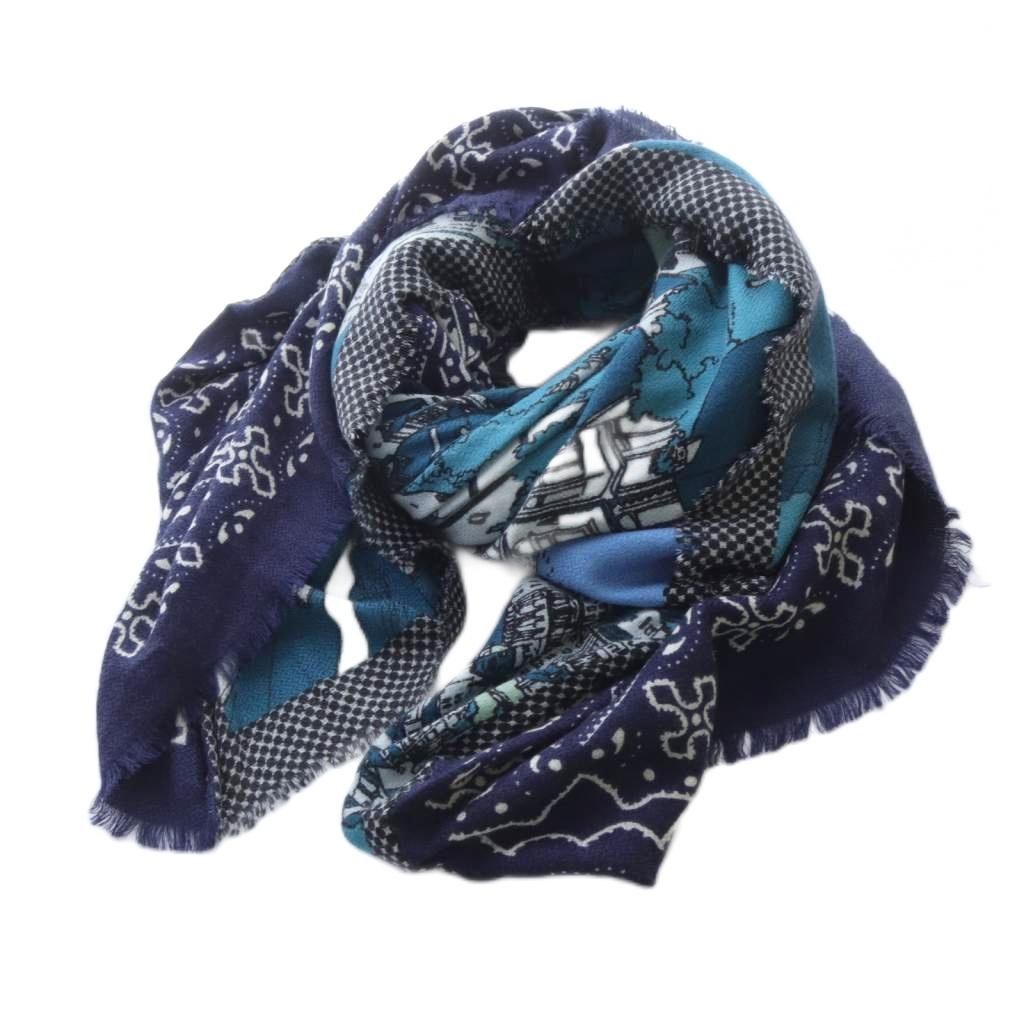 ウール シルク混 総柄 ストール