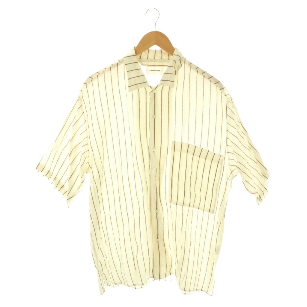 OPEN COLLAR SHIRTS ORGANIC LINEN PRINTED STRIPEシャツ