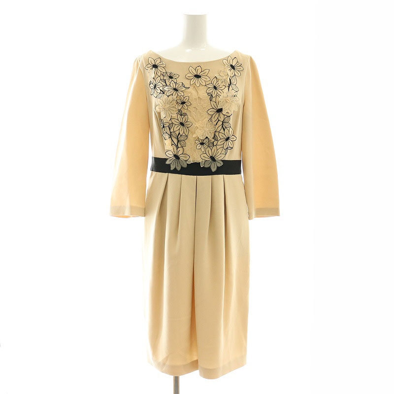 フラワーモチーフ ボックスプリーツ ワンピース