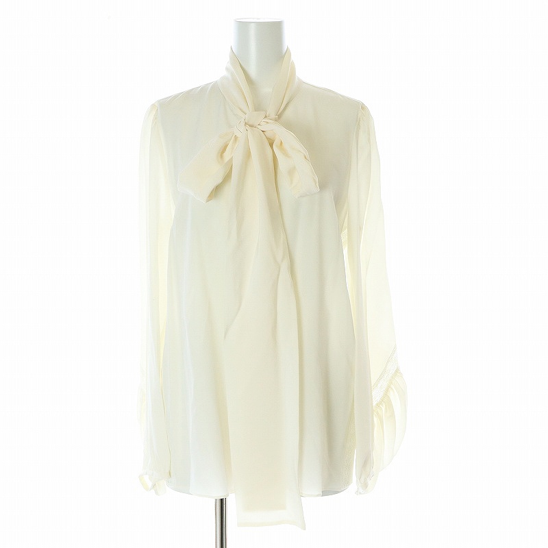 シルク レース装飾 ボウタイブラウス