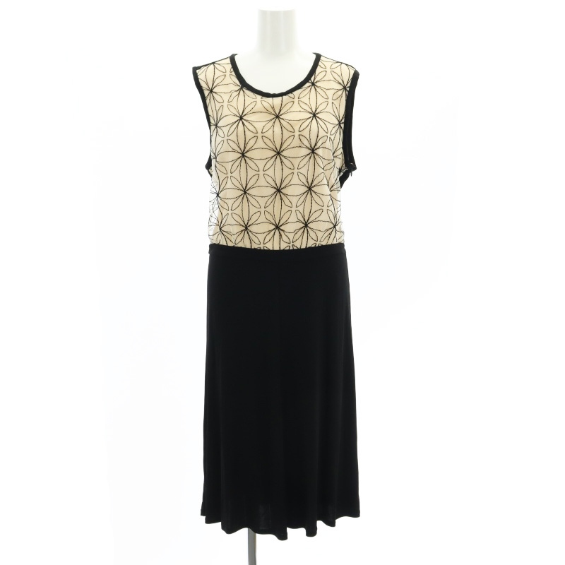 フラワー刺繍切替ノースリーブワンピース