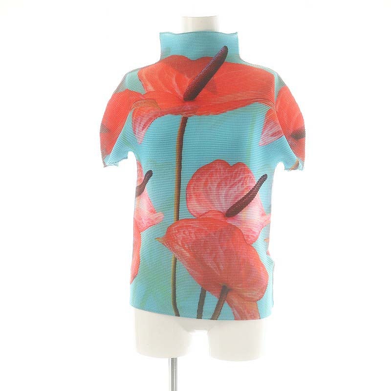 花柄 プリーツ 半袖 カットソー