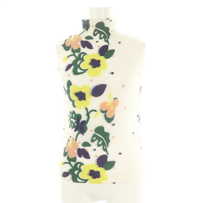ストレッチプリーツ ノースリーブ ハイネック 柄 カットソー
