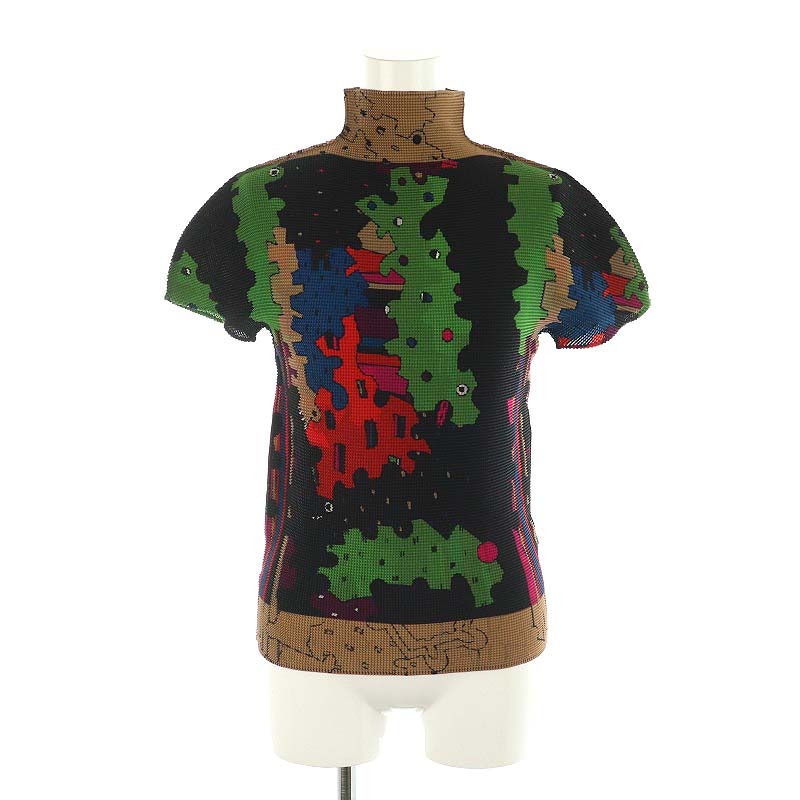 ストレッチプリーツ 半袖 ハイネック 柄 カットソー