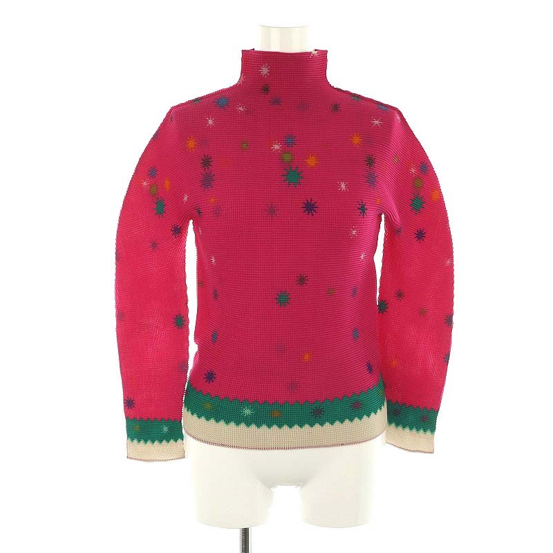 ストレッチプリーツ 長袖 ハイネック 柄 カットソー