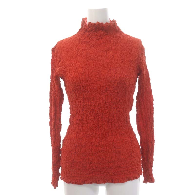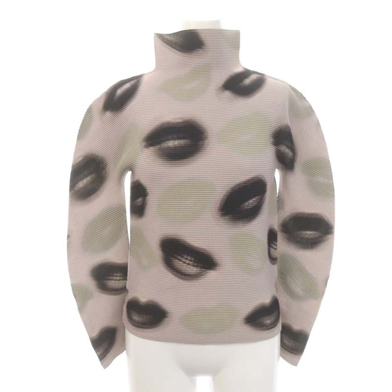 リッププリントワッフルプリーツハイネックブラウス