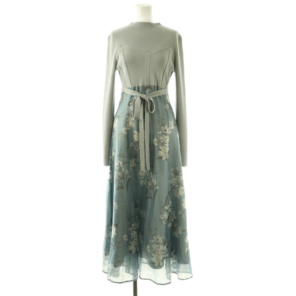 24AW シアーノースリニット花柄ドッキングワンピース