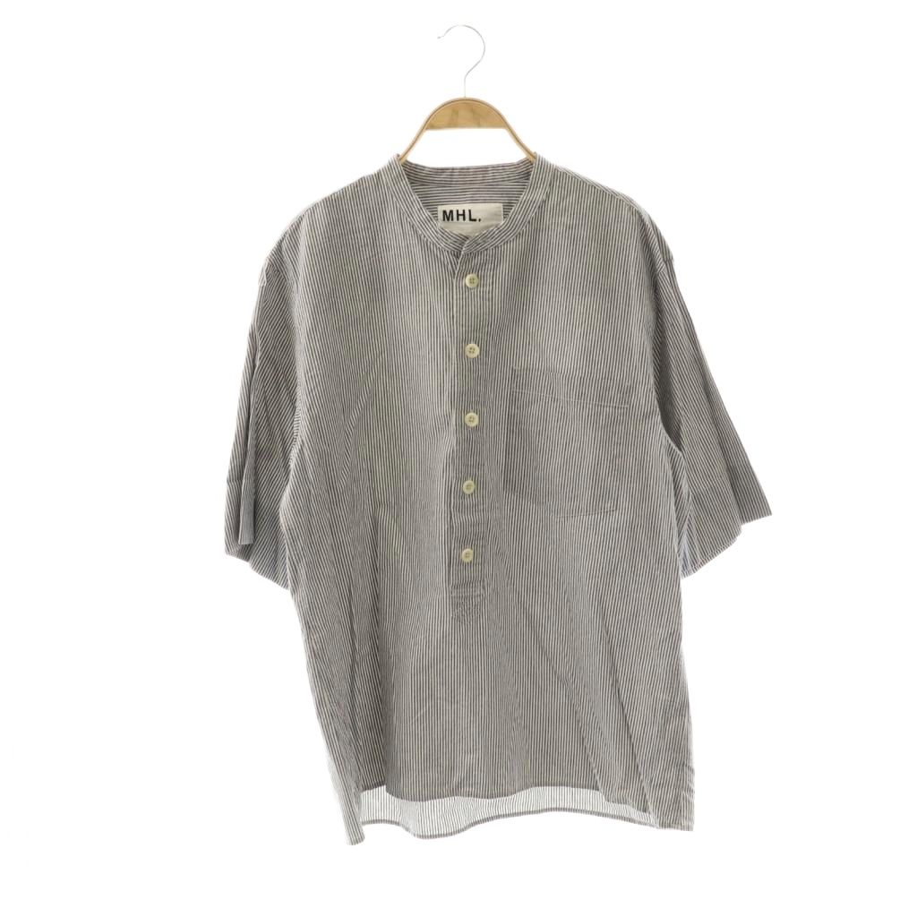 ストライプ柄バンドカラーS/Sシャツ