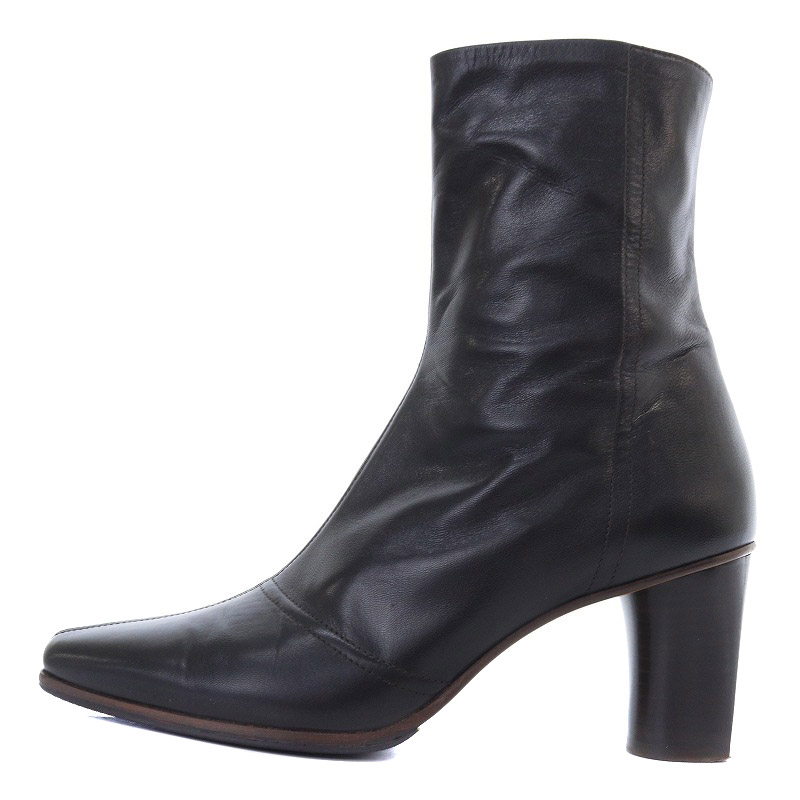 チャンキーヒール レザーショートブーツ