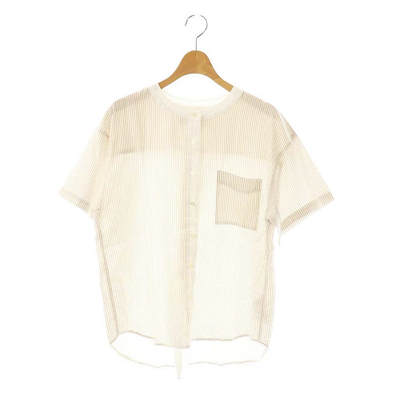 バンドカラーストライプ半袖シャツ