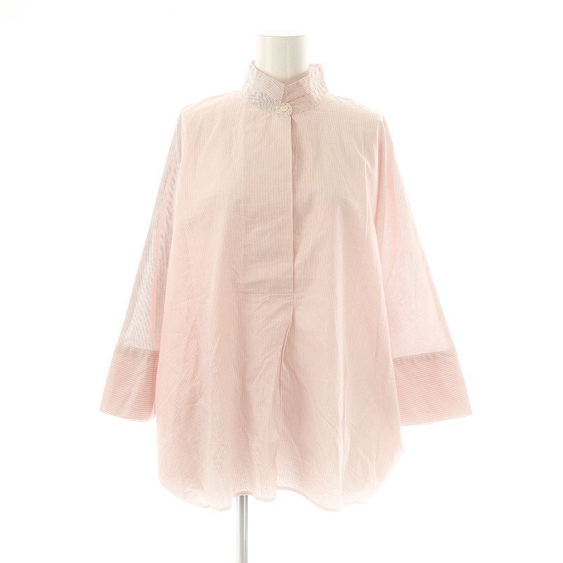スタンドカラーストライプ七分袖長袖シャツ