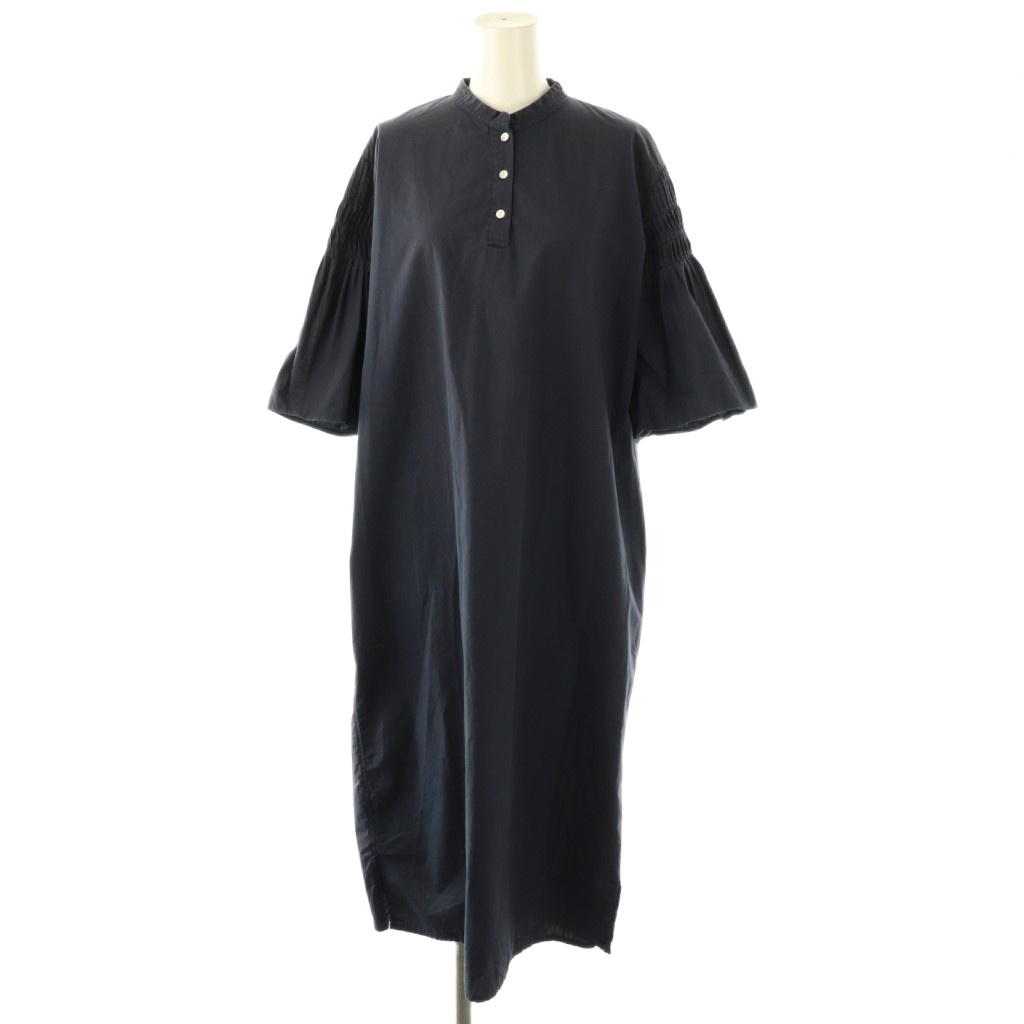 コットンスタンドカラーピンタックスリーブロングワンピース