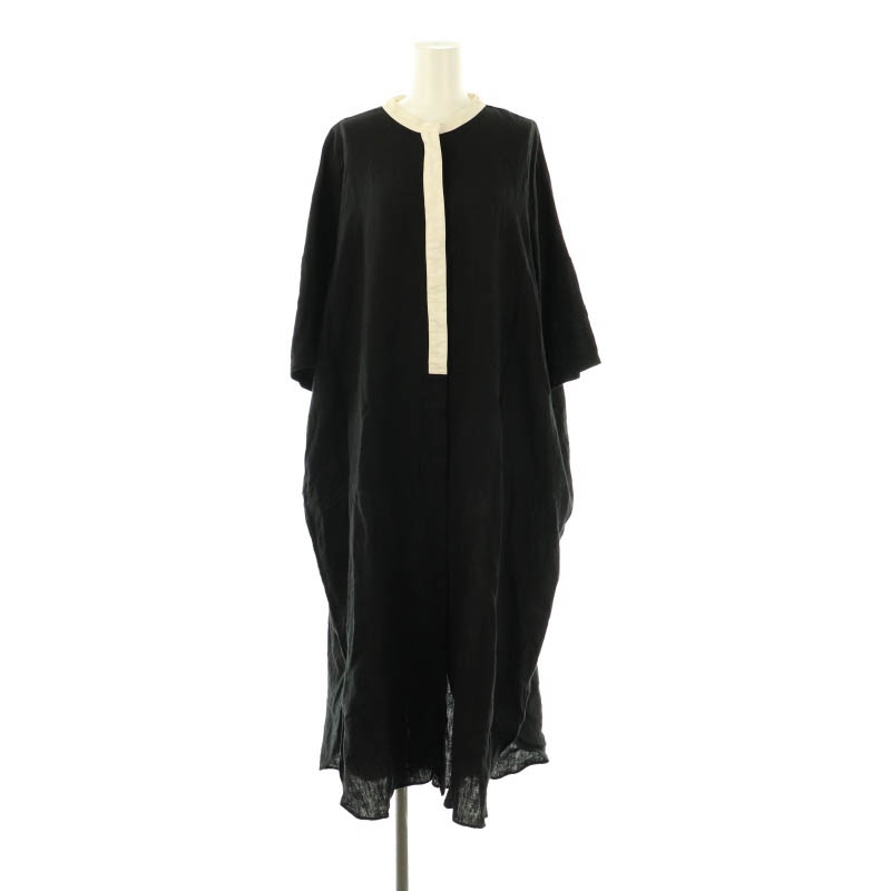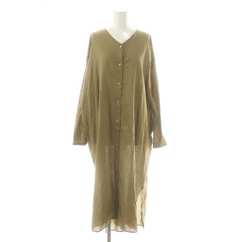 リネン スタンドカラー シャツワンピース