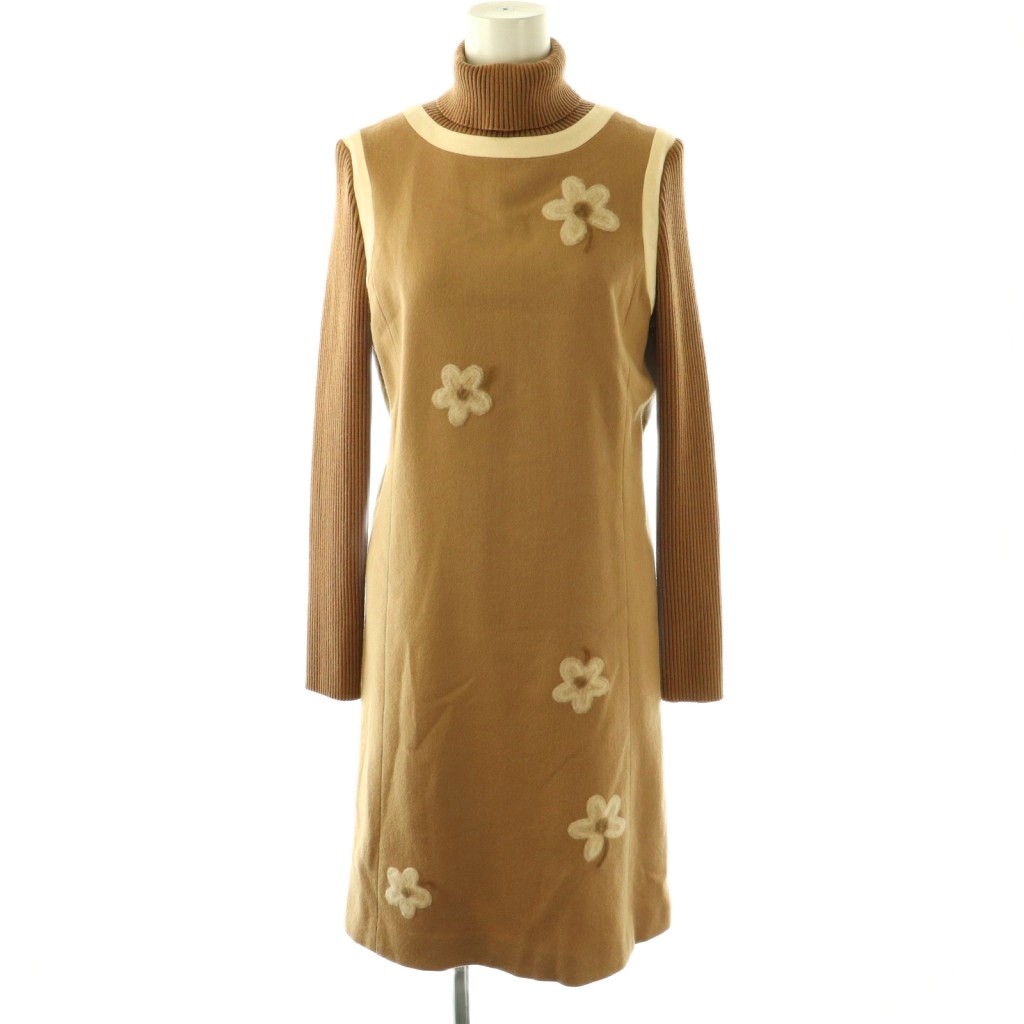 フラワー装飾 タートルネックワンピース